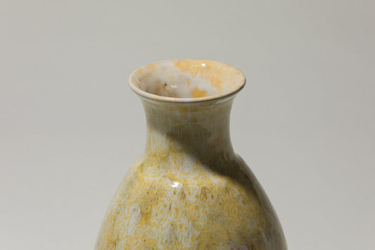 Ceramic oval VASE with yellow textured pea crackle glaze
