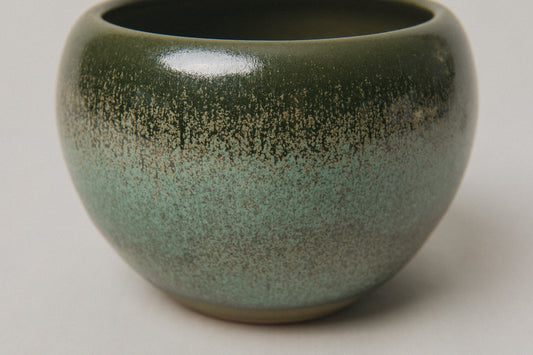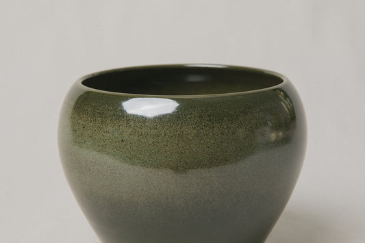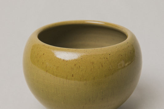 Ceramic oval VASE with yellow textured pea crackle glaze