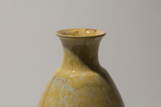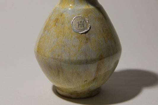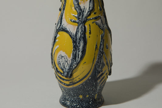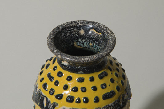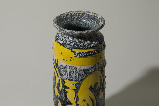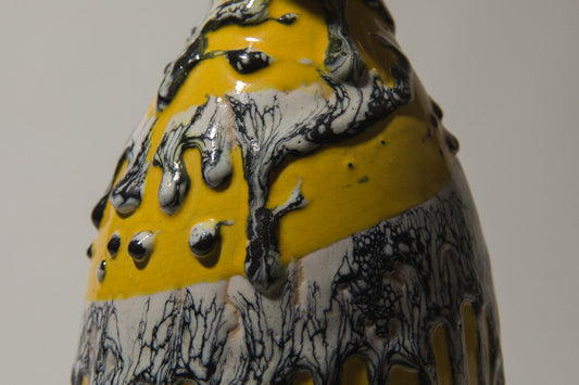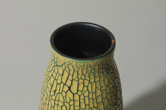 Ceramic VASE with yellow textured crackle glaze _ 495