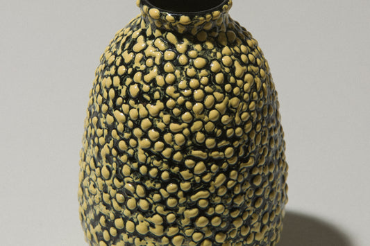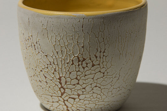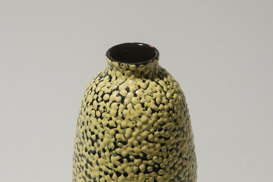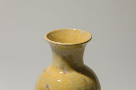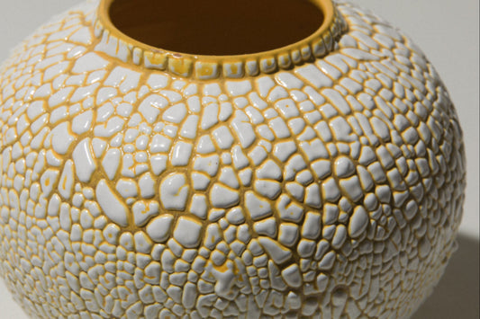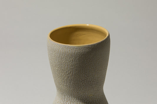 Ceramic oval VASE with yellow textured pea crackle glaze
