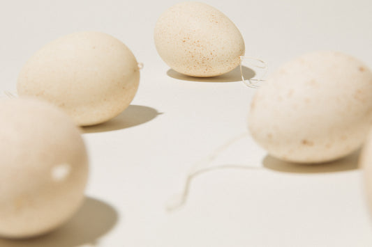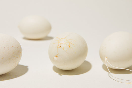 Set of six glazed & scratched SMALL CHICKEN EGGS