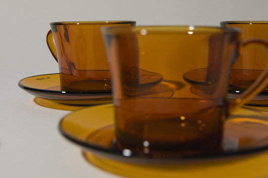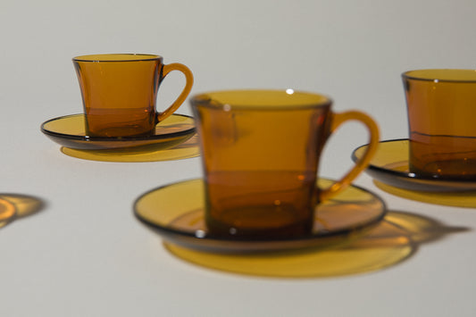 Set of six amber glass COFFEE CUP & SAUCER