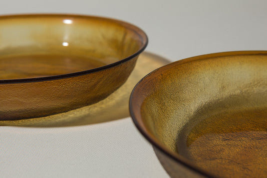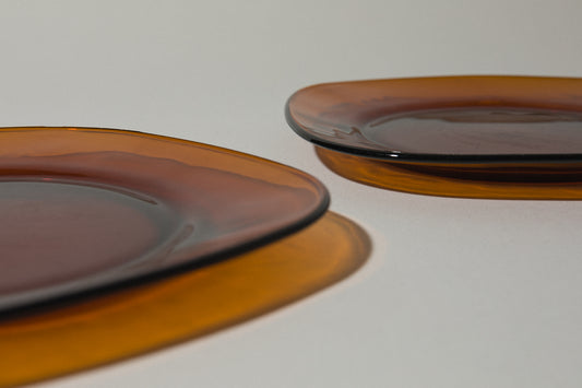 Set of two amber glass SERVING PLATES