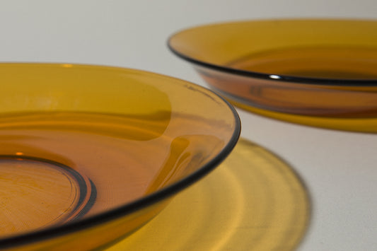 Sold outSet of two amber glass SOUP PLATES