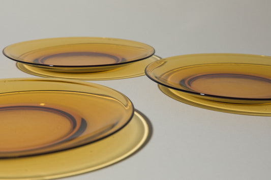 Set of three amber glass DINNER PLATES
