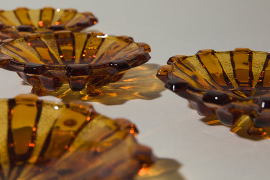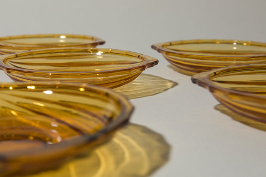 Set of five amber glass DESSERT PLATES