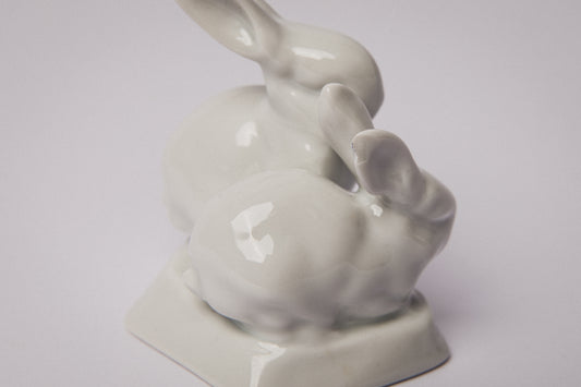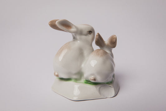 Zsolnay RABBIT with wooden log FIGURINE _ 1480