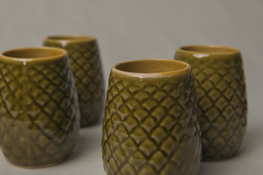 Sold outSet of six pine cone TUMBLERS _ 1196
