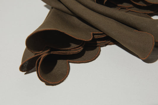 Brown embroidered TABLECLOTH and NAPKIN SET
