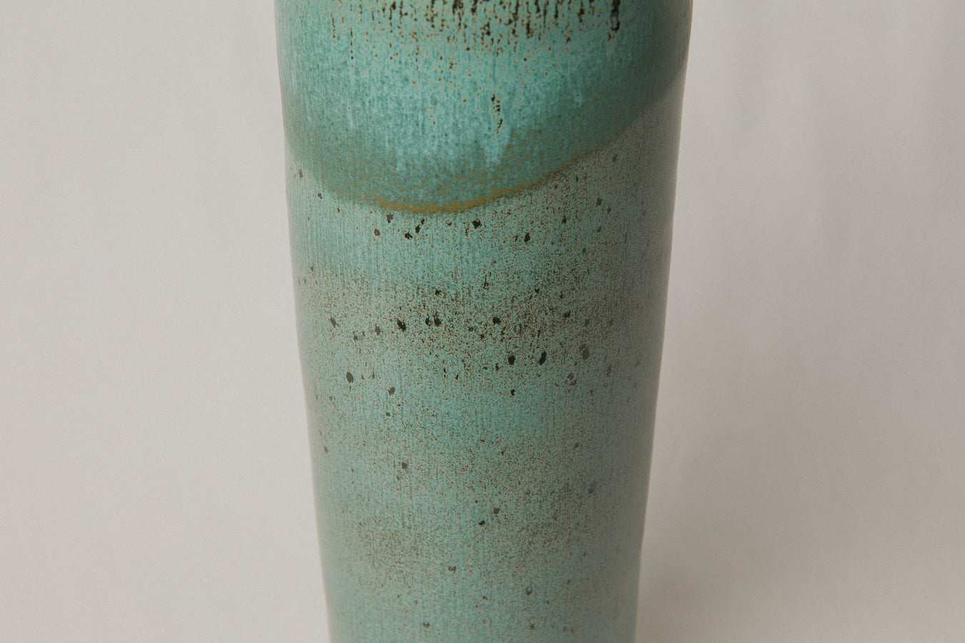 Handcrafted by a Hungarian ceramic artist, it embodies the clarity and quiet sophistication of today’s studio craft. With its elegant proportions and luminous glaze work, this piece stands as both a functional floor vase and a sculptural statement object within the home.
