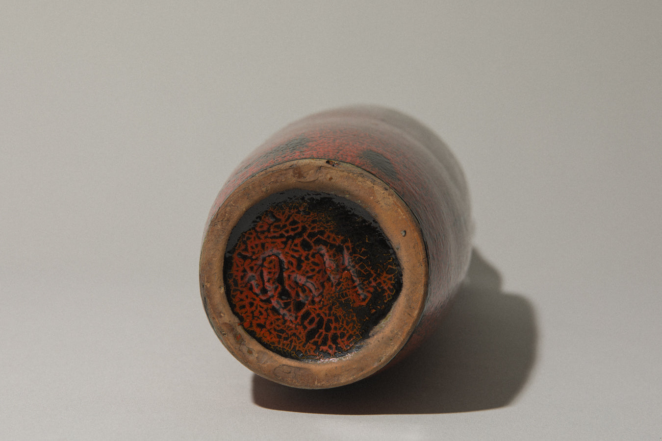 The piece reflects the factory’s experimental approach to glazes in the mid-20th century, where everyday forms were elevated by bold, modern surface treatments. Functional yet sculptural, this vase stands as a testament to the creativity of Hungarian ceramicists working within industrial production, preserving individuality through unique finishes.