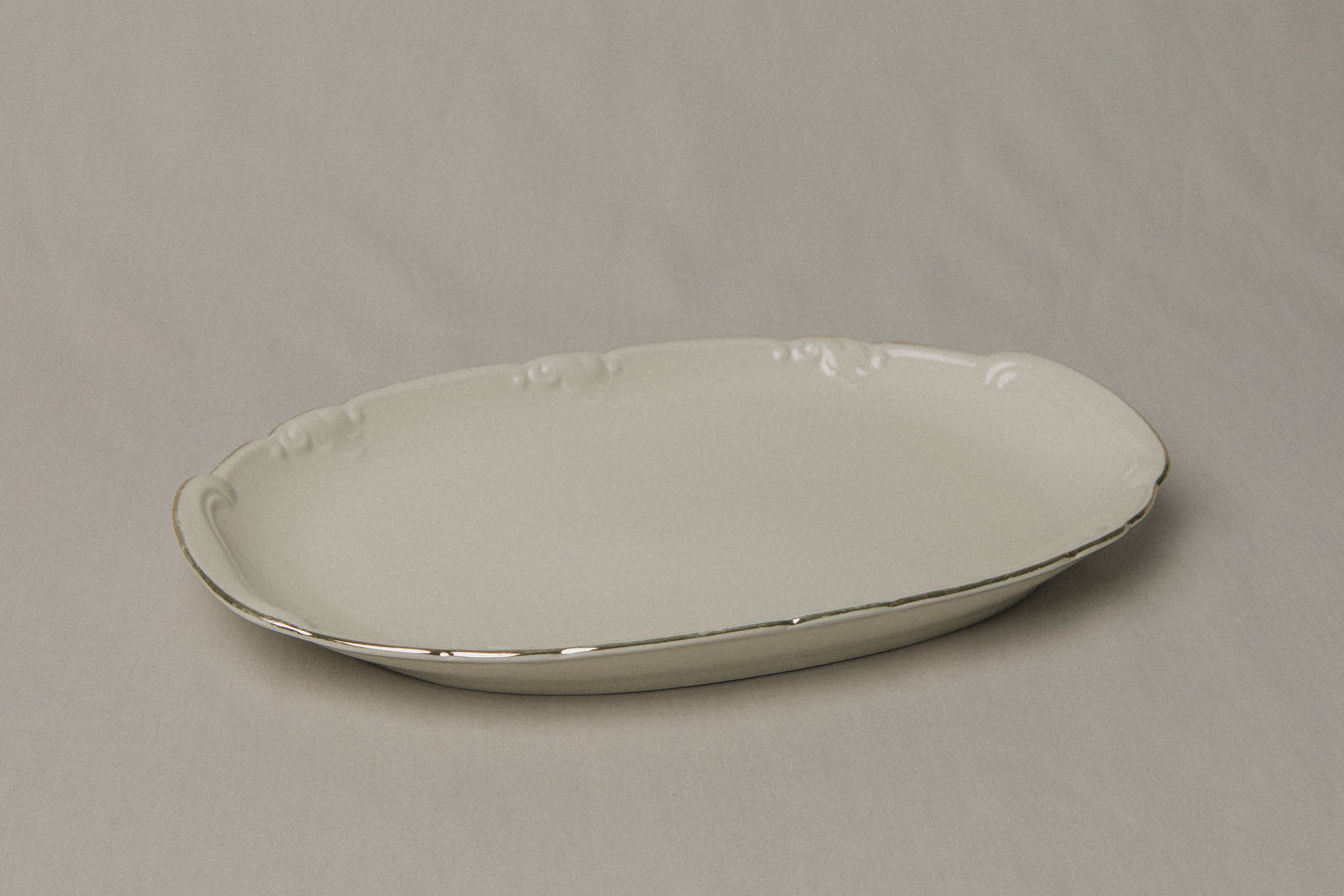 Vintage porcelain oval SERVING DISH with gold stripe _ 1236
